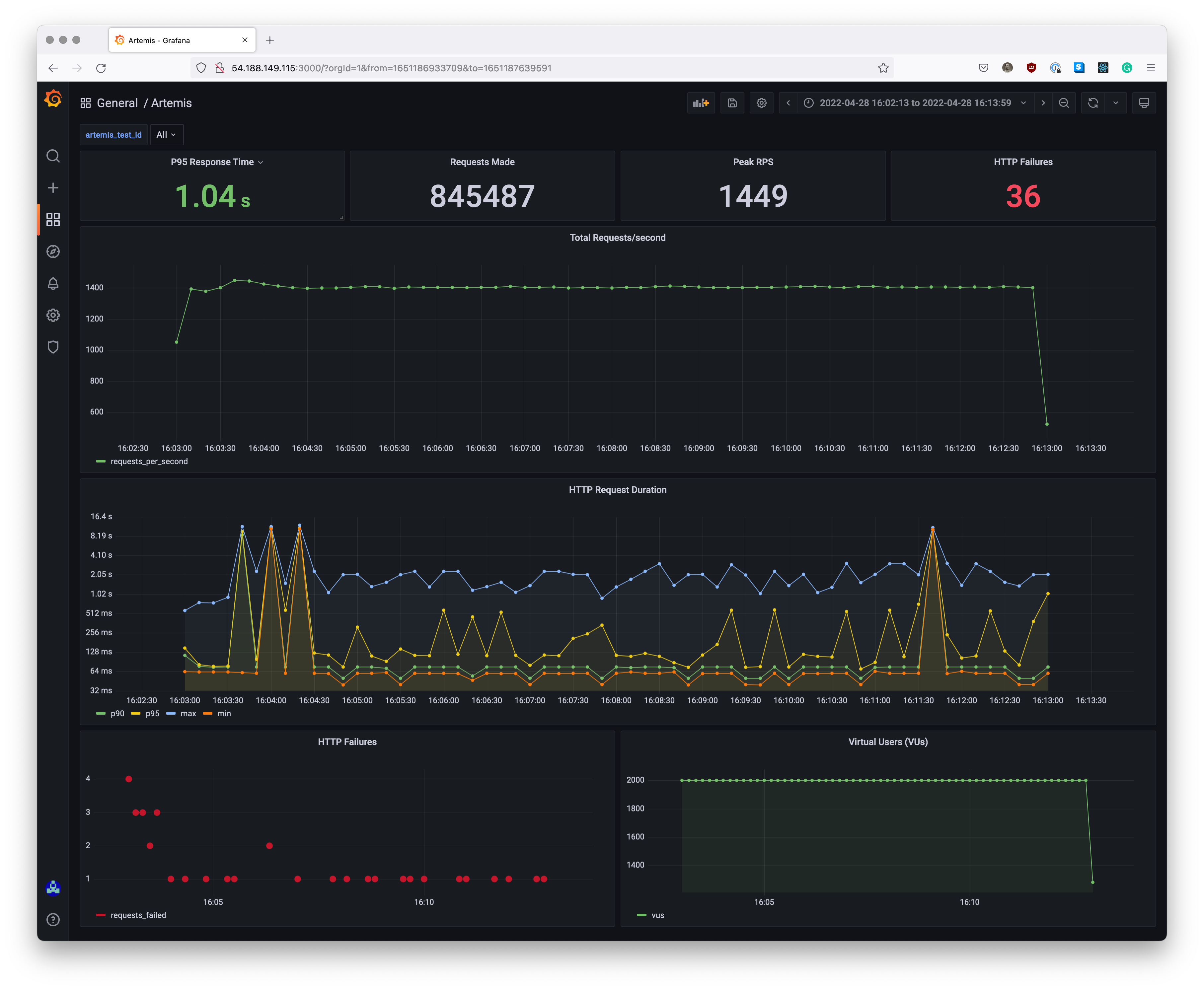 Recently, I created Artemis, an open-source, serverless framework for scalable API load testing built with Node.js, k6, Telegraf, AWS Timestream, and Grafana, and deployed utilizing the AWS CDK and SDK.